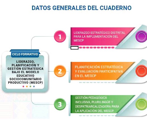 El ciclo formativo ha sido aprobado por el Ministerio de Educación de Bolivia y consistente en tres cursos que abordan aspectos fundamentales del liderazgo y la gestión educativa en el contexto del MESCP. Los cursos, que se pueden descargar haciendo click aquí, son: