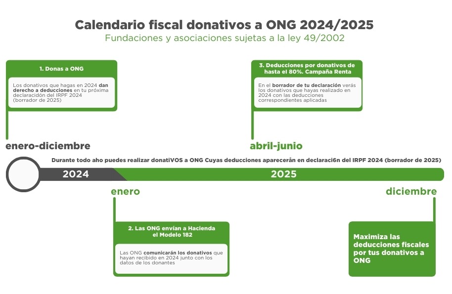 Los nuevos porcentajes de deducción aplican desde 1 de enero de 2024 a los donativos a entidades acogidas a la Ley 49/2002, de 23 de diciembre, de régimen fiscal de las entidades sin fines lucrativos y de los incentivos al mecenazgo.