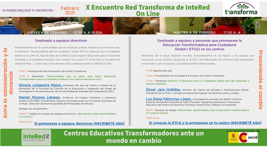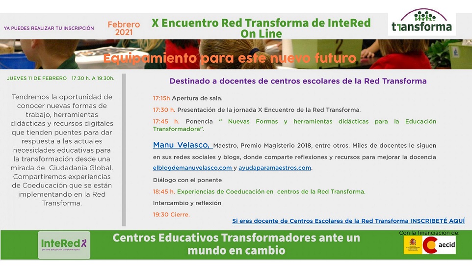 El 11 de febrero de 17:30 h a 19:30 h. Destinado a Docentes de centros educativos de la Red Transforma de InteRed